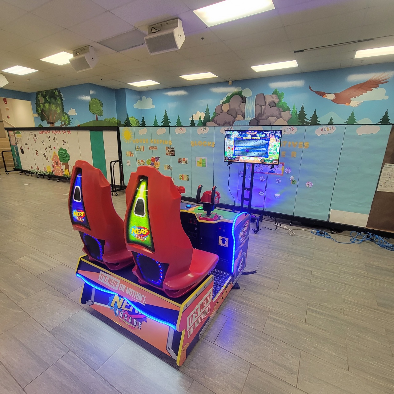 NERF ARCADE is a high-energy, fast-paced game that is exciting for kids of all ages and family-friendly. Players grab hold of two oversized NERF Blasters and shoot as many targets as possible to win or reach a high score. With 4 exciting levels and skill-based play. Single play or Multi-player video and arcade game.